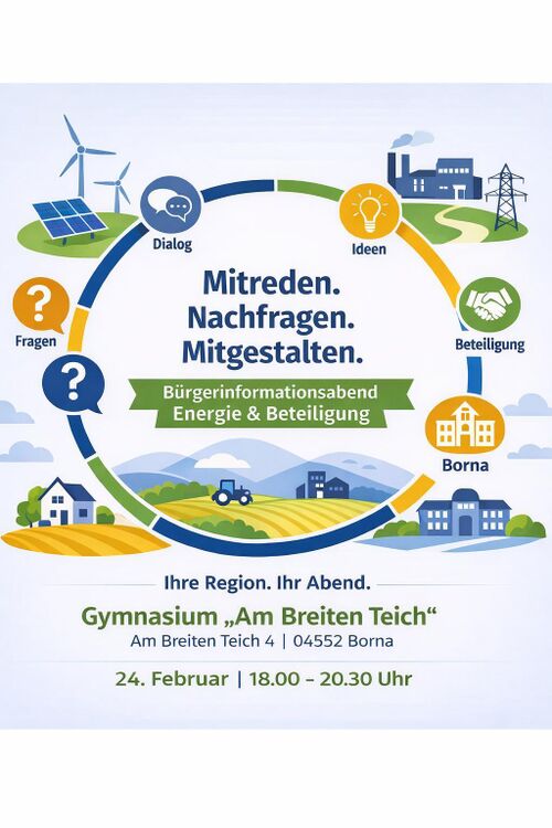 Veränderungen in der Energieversorgung betreffen uns direkt – in unseren Kommunen, unserem direkten Umfeld und im Alltag. Doch was bedeutet das konkret im Raum Borna? Welche Spielräume gibt es für Bürgerinnen und Bürger?